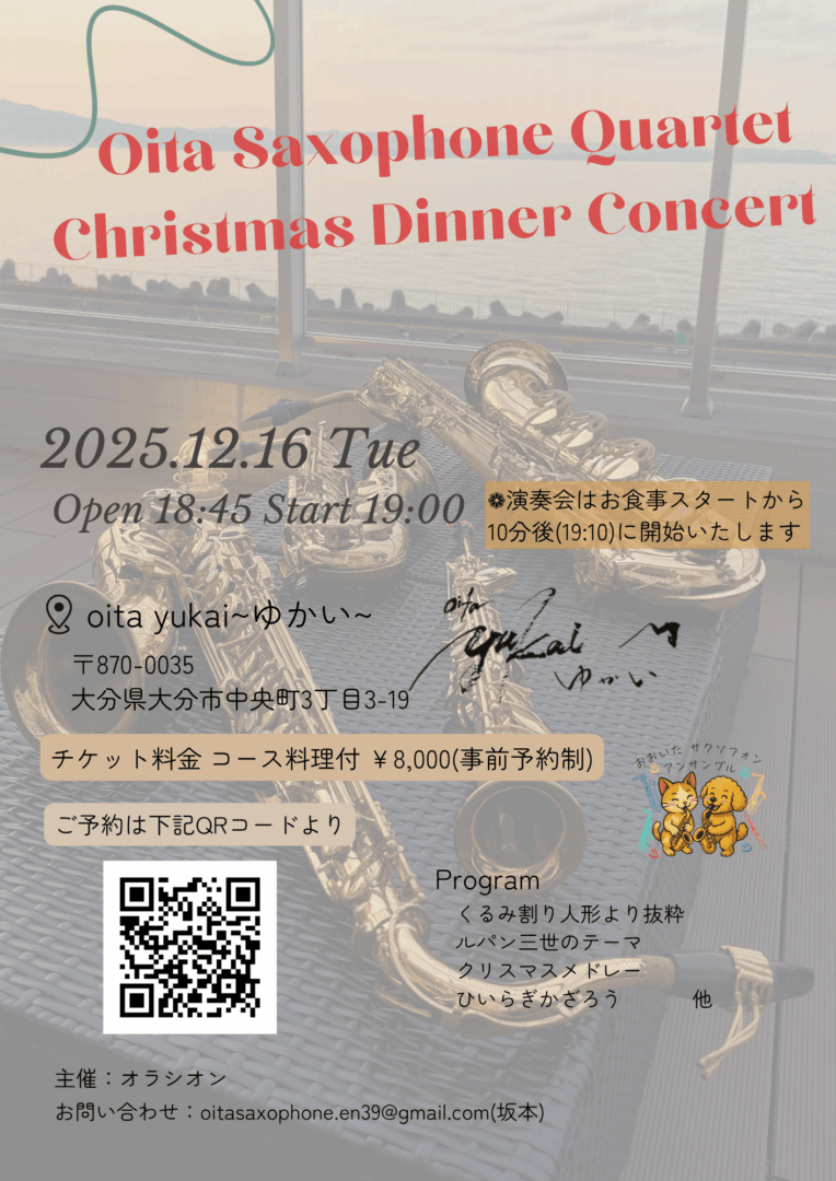 | 概要 | Oita Saxophone Quartet Christmas Dinner |