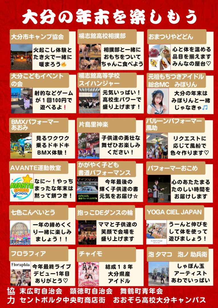 | アーティスト | 泡ノ助兵衛・泡タマコ(しゃぼん玉アーティスト)、バルーンパフォーマー風助、フロラフィア(アイドルグループ)、みほ(アイドル)、BMXパフォーマー あおみ |