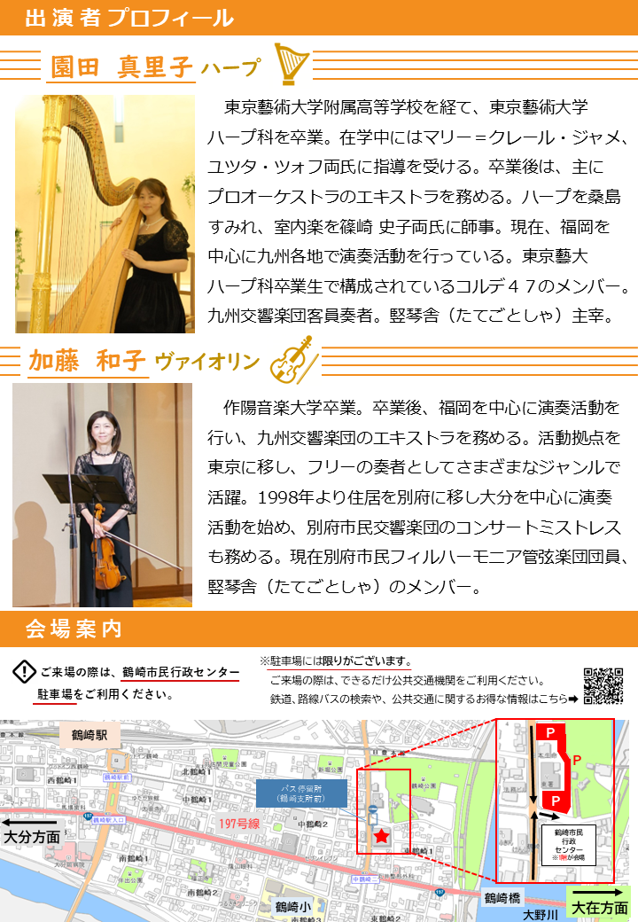 ■出演 園田真理子(ハープ)、加藤和子(ヴァイオリン)
