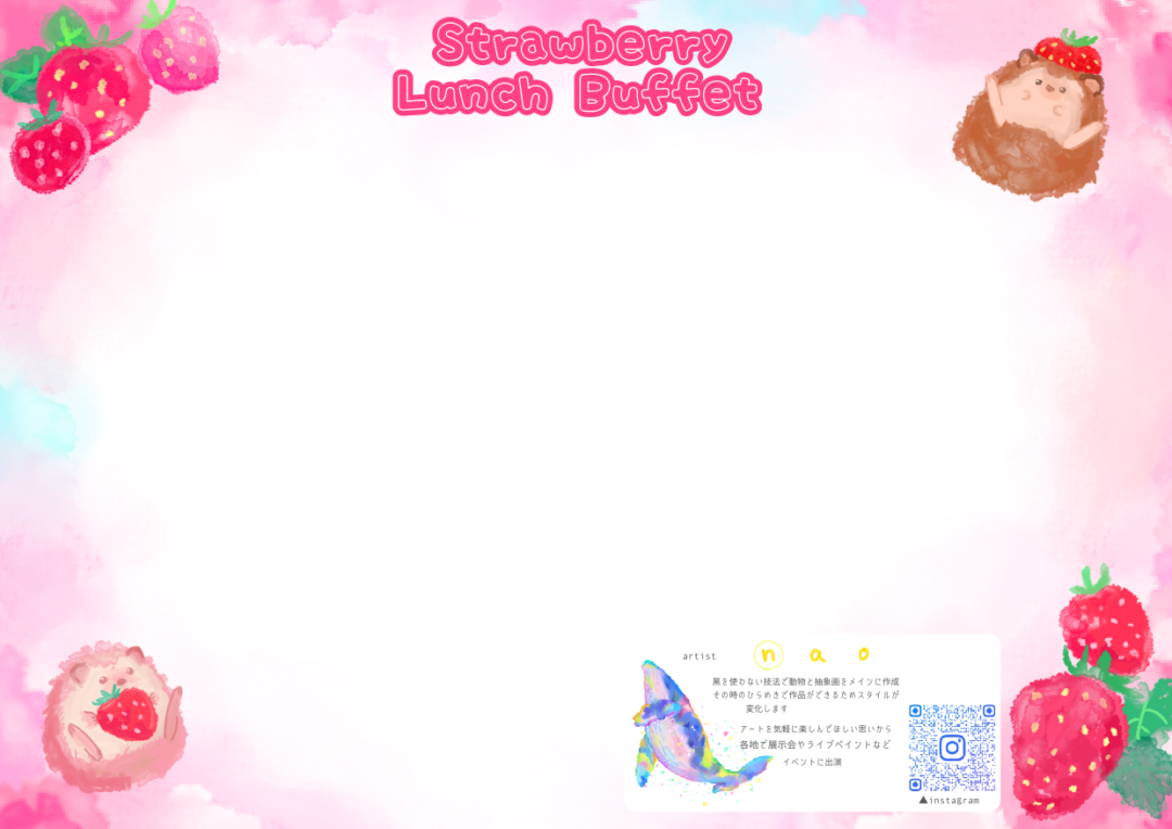 ホテル日航大分 オアシスタワーの人気ブッフェレストラン「オールデイダイニング セリーナ」で開催される「Strawberry Lunch Buffe」。今回、この春の特別企画として、POART登録アーティスト・naoさんとのコラボレーションが実現しました。今回制作した作品は、店頭ポスターやランチョンマットとして使用され、訪れた人を、食とアートの世界へとやさしく誘います。