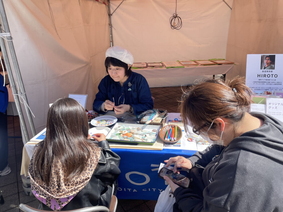2026.03.24 POARTブースを出展しました!(OABぐるフェス) 3月14日(土)・15日(日)の2日間、大分駅前広場で開催された「OABぐるフェス」にPOARTブースを出展しました。缶バッジ制作体験をはじめ、登録アーティストによるワークショップや作品販売を行い、延べ100名を超える方々にご来場いただきました。市民の皆様の笑顔に直接触れることができ、文化・芸術を身近に繋ぐ貴重な機会となりました。これからもPOARTを通じた楽しい企画をお届けしていきます!会場へお越しくださった皆様、ありがとうございました。 前の記事へ 記事一覧